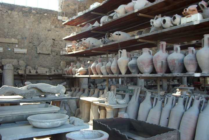 A picture of one of the many storehouses of items discovered in the excavations. Plaster casts would be made of the cavities left of the bodies enclosed in the hard shell of ash and stones. |