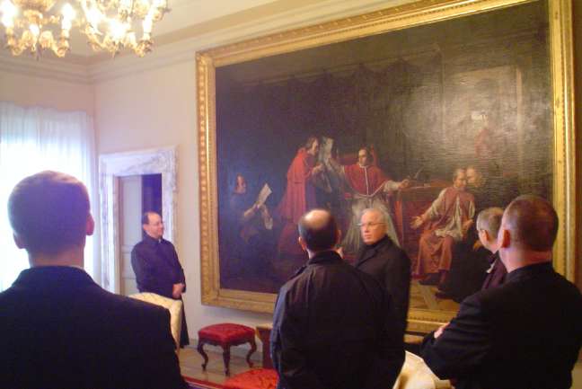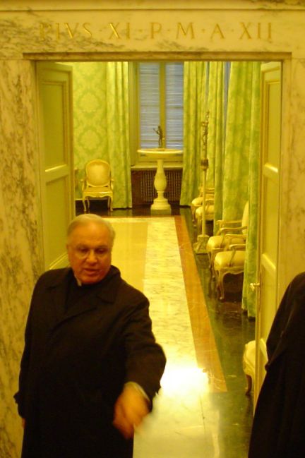 Here we enter into the residence of Bishop Harvey, the papal secretary. |