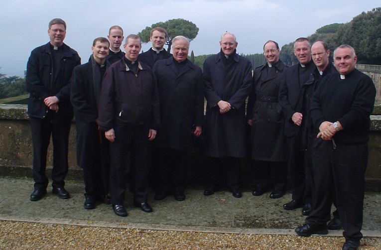 The whole group of us: Frs. Jerry Pokorsky, Gary Coulter (me), Peter Mitchell, Tim Thorburn, Ray Jansen, Bishop Bruskewitz, Bishop Harvey, Tom Fucinaro, Jerry Baker, Jim Conley, and Jim Reinert. |