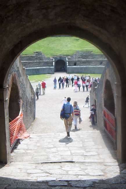In Nero's time it was converted into a gladiators' barracks, and many fascinating weapons were found here. |