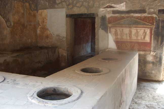 The Thermopolium of Asellina, a typical bar where hot and cold drinks were sold. The city was famous for its wine, which the residents consumed in great quantities. |