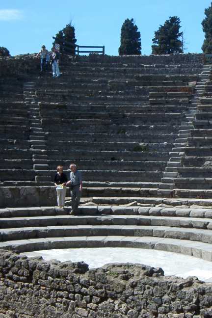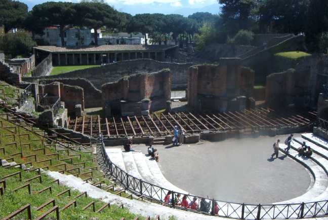 The little theater nearby, built between 80 and 75 BC, is one of the best preserved examples of ancient theaters. |