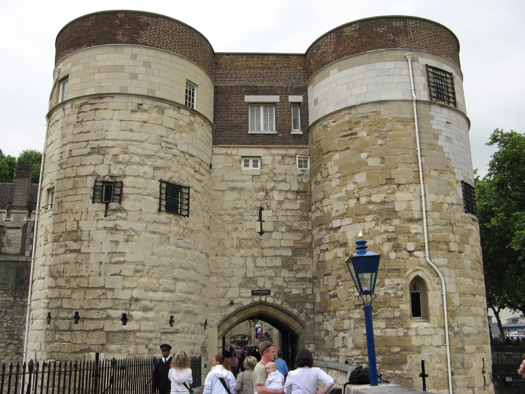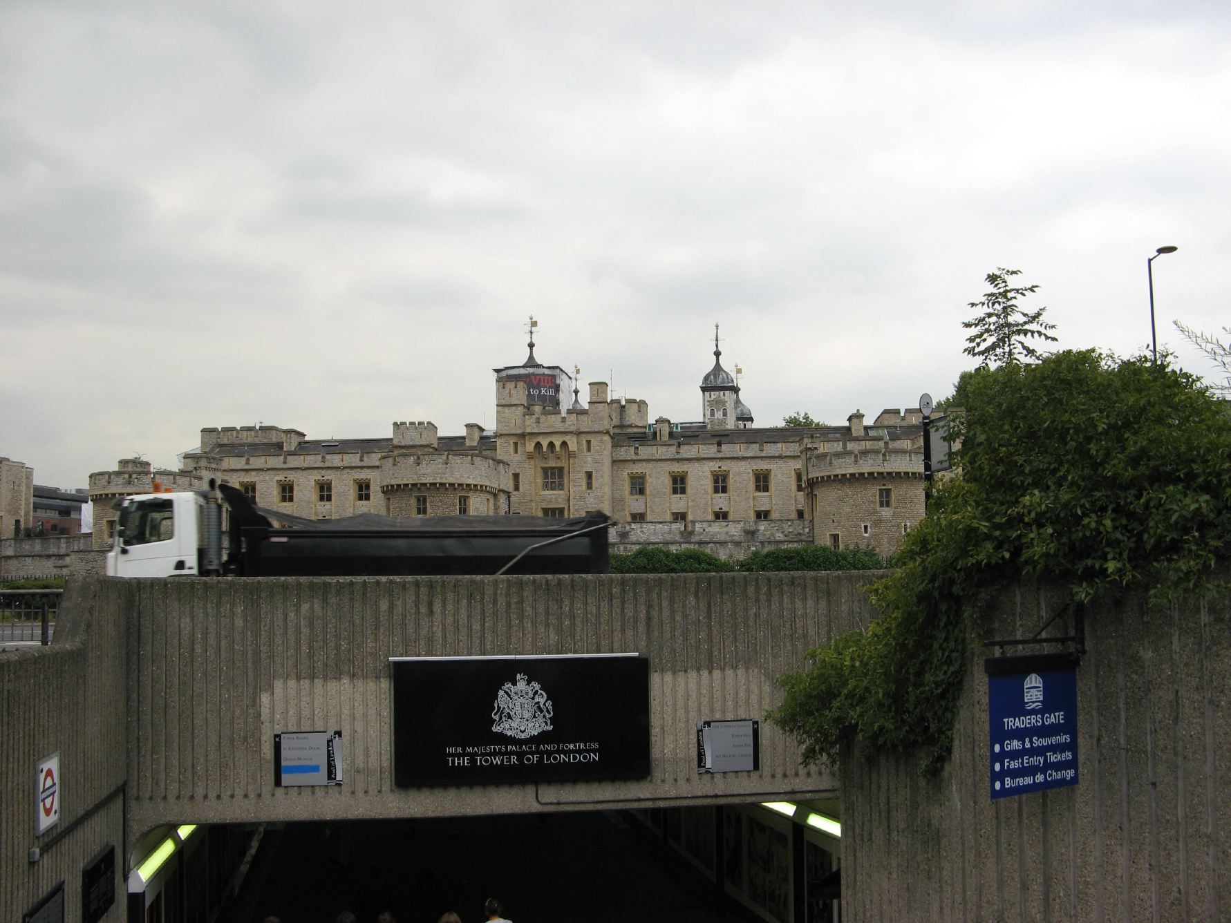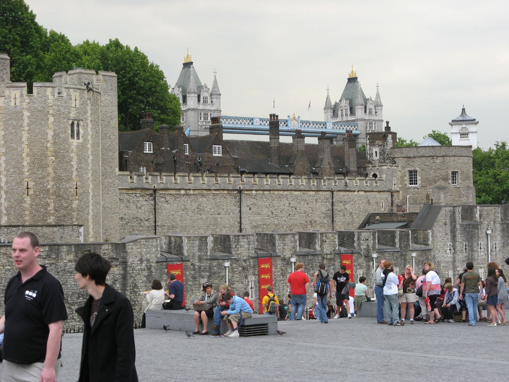 On the Beefeater tour. The round tower on the right is the bell tower where Thomas More was held. |