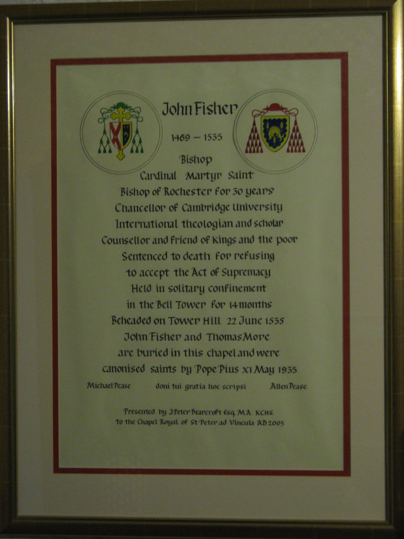 Unfortunately, John Fisher's remains were mixed in a grave with other bones, so he just get's this plaque. He died on this very day, June 22, 1535. |