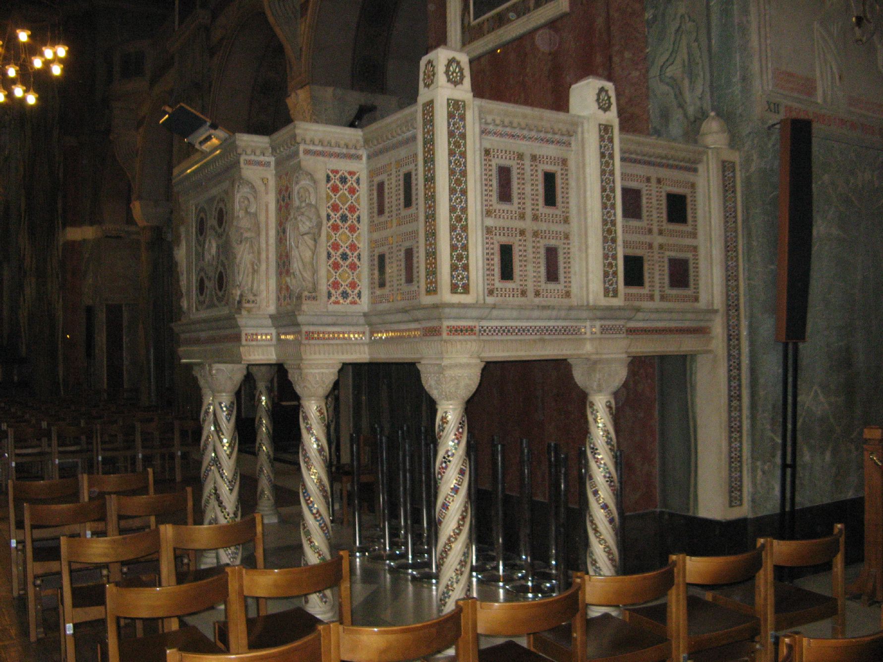 Beatiful and intricate marble pulpit. There are one hundred different types of marble decorating the interior. |