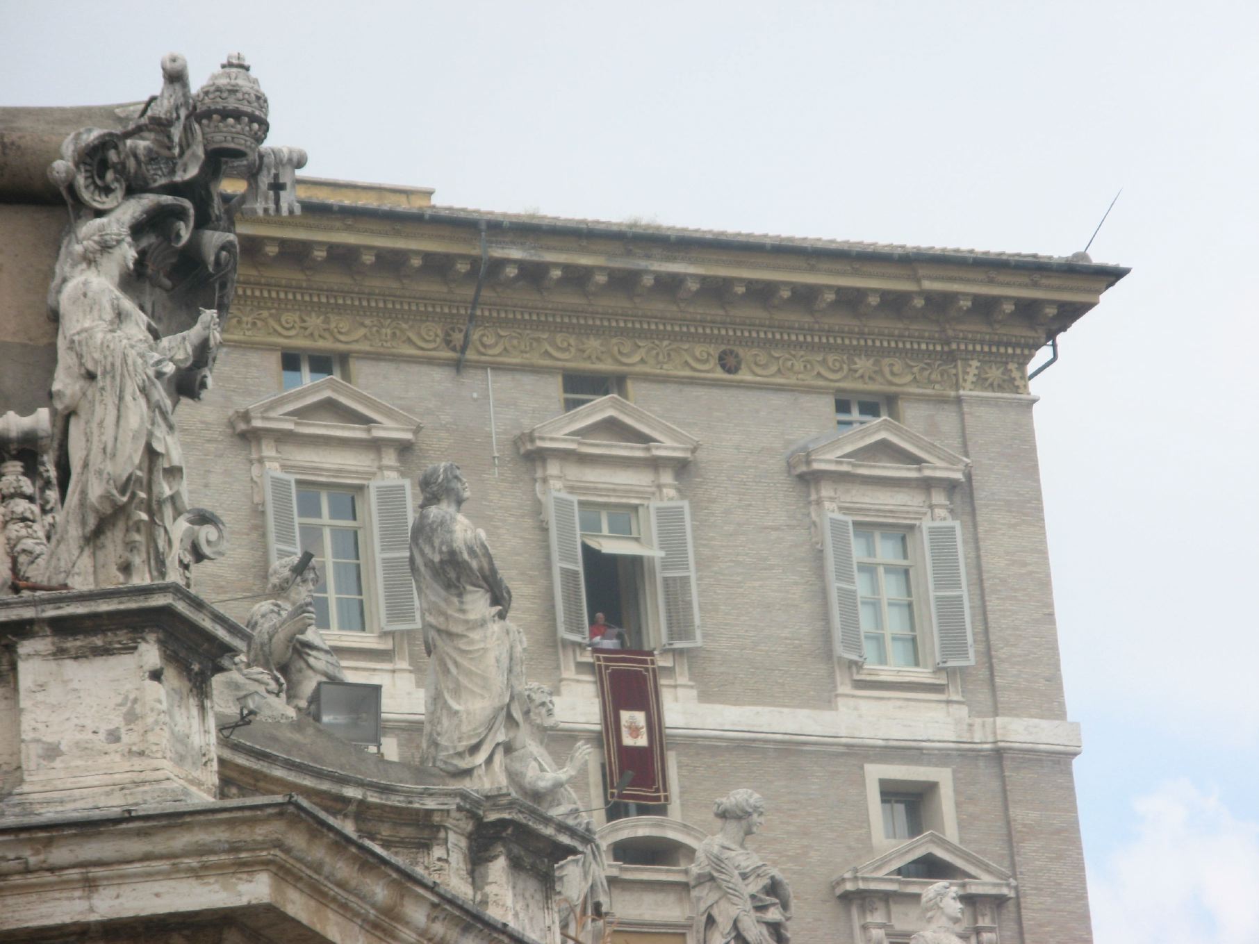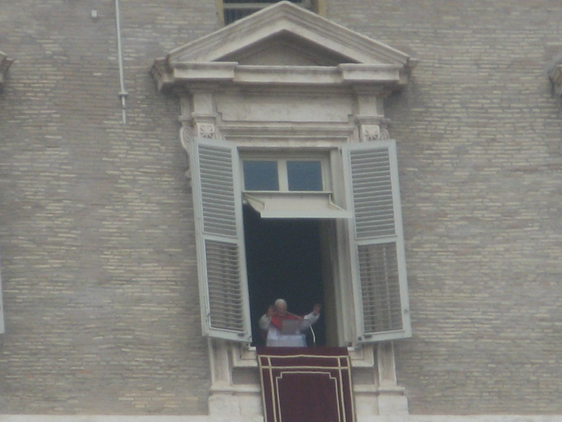 The Pope greets the pilgrims from his apartment window.