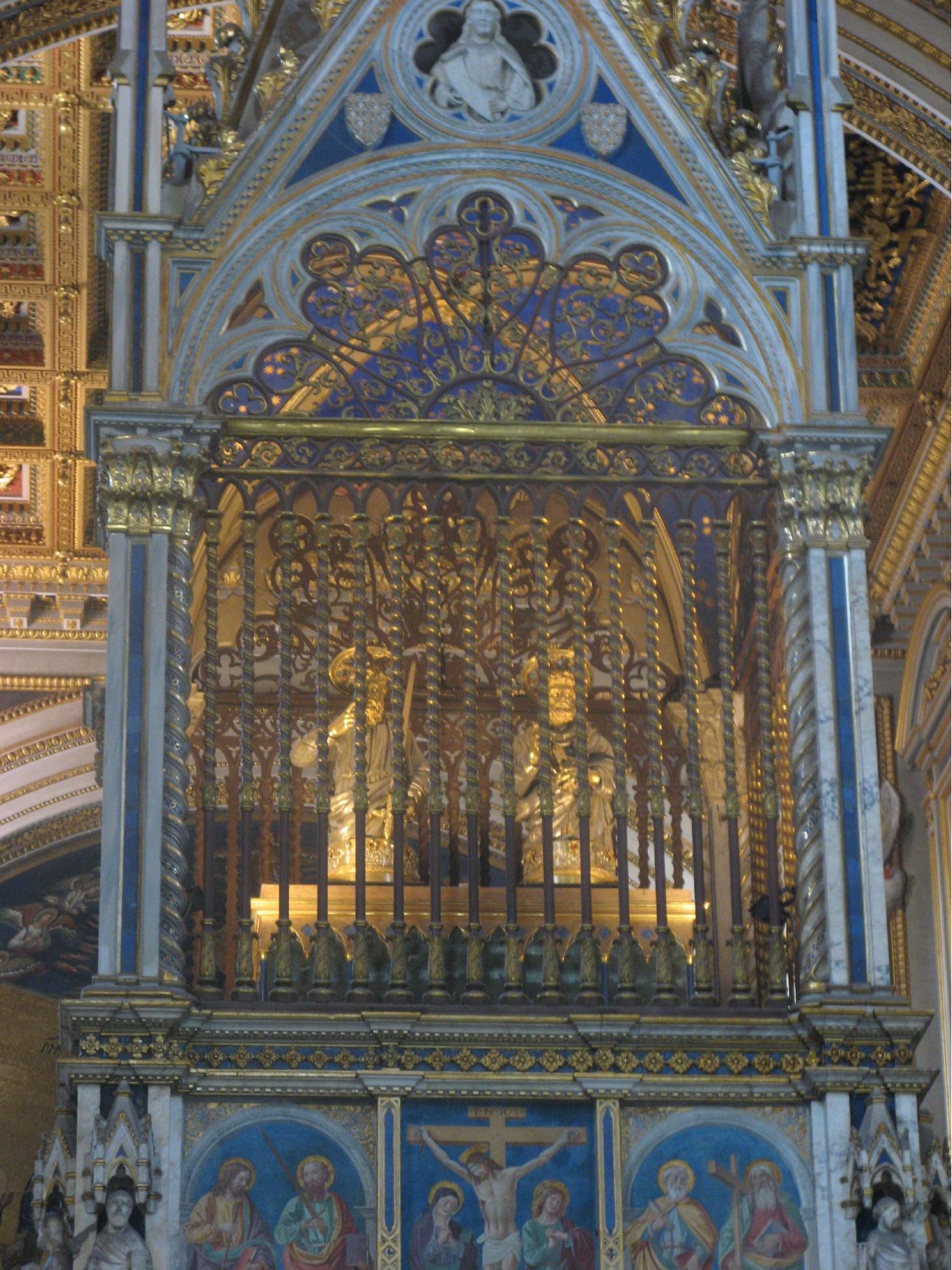 Above the main altar of St. John Lateran are reliquaries contining the heads of Sts Peter and Paul. |