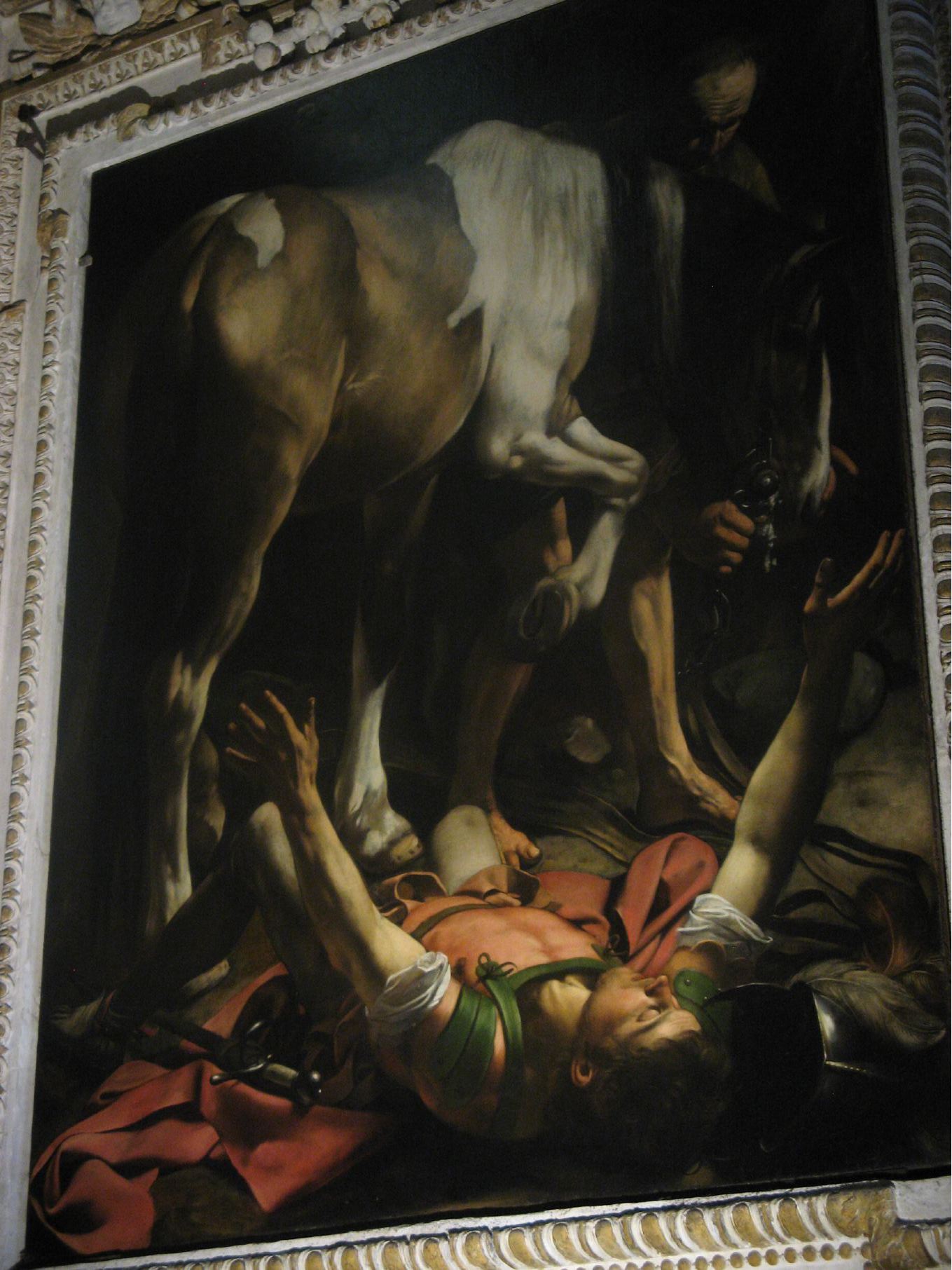 The Conversion of St Paul, a painting by Carravagio in Santa Maria del Populo. |