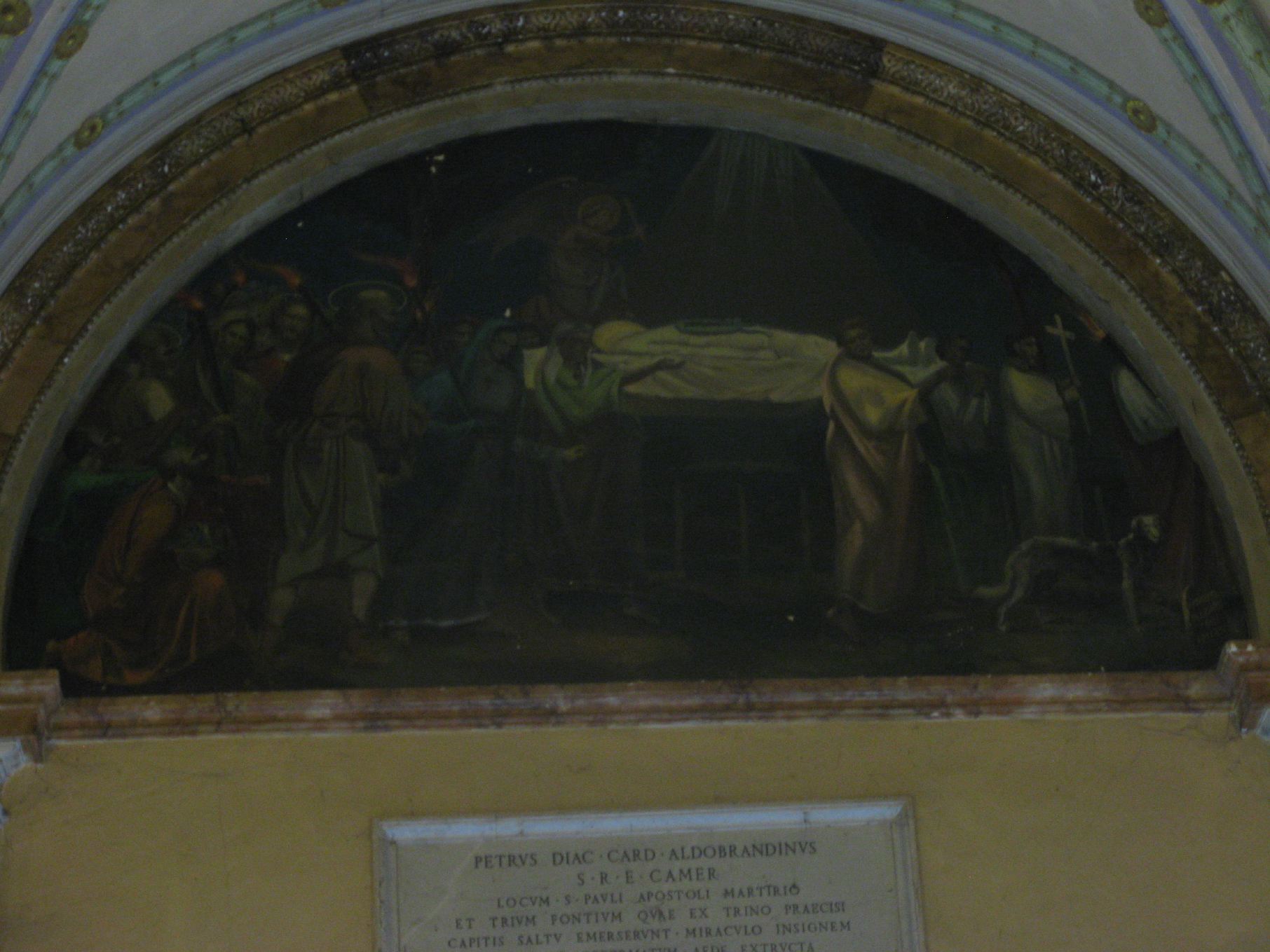 Depiction of St. Paul's body being carried in procession from here to St. Paul's outside the walls where he was buried. |