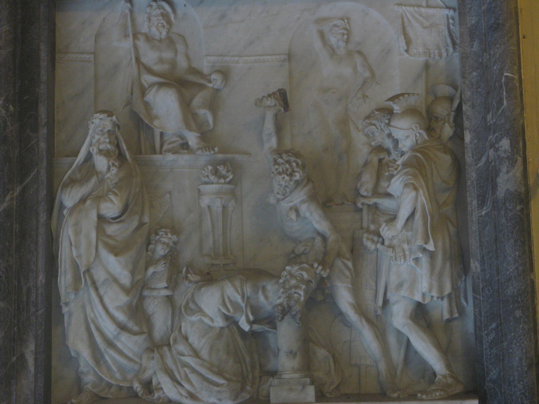 Note how Paul's head is on the pillar - unfortunately this sculpture has been damaged - the executioner's sword is missing. | |