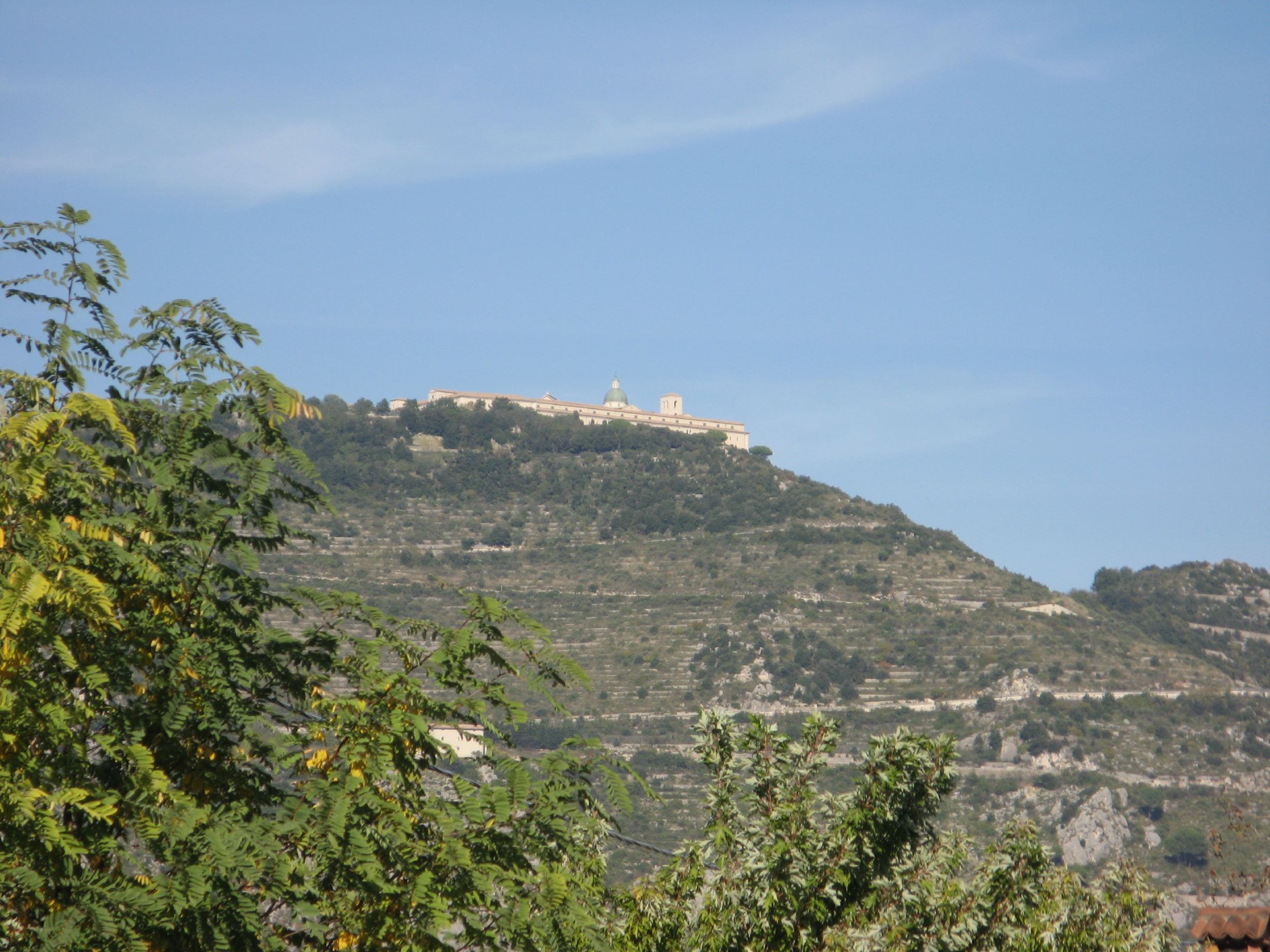 Approaching the Abbey of Montecassino, notice the switchbacking road.
