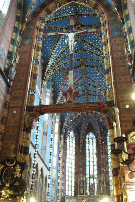 The central nave is 28 meters high, with a giant crucifix of 1520 high above. |
