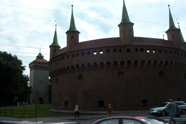 Outside the gate, the Barbican fortress, built to defend the St. Florian Gate, it was virtually impregnable to enemy attack. The rest of the city walls and moat have been replaced by parks since 1810. |