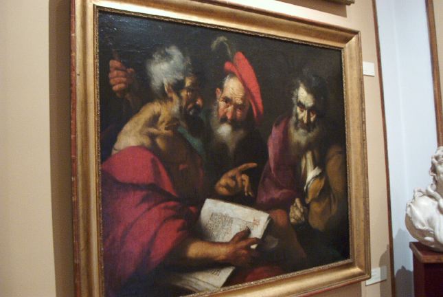 Three philosophers in discussion. |