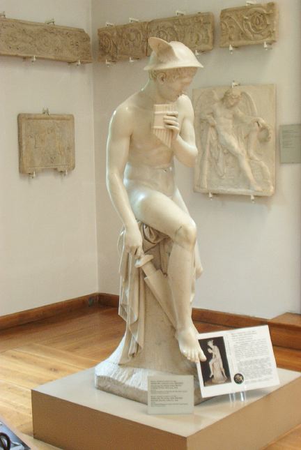 When approached from the other side, this God looks pretty harmless, playing his flute, but then one notices that his other hand is drawing a sword... |