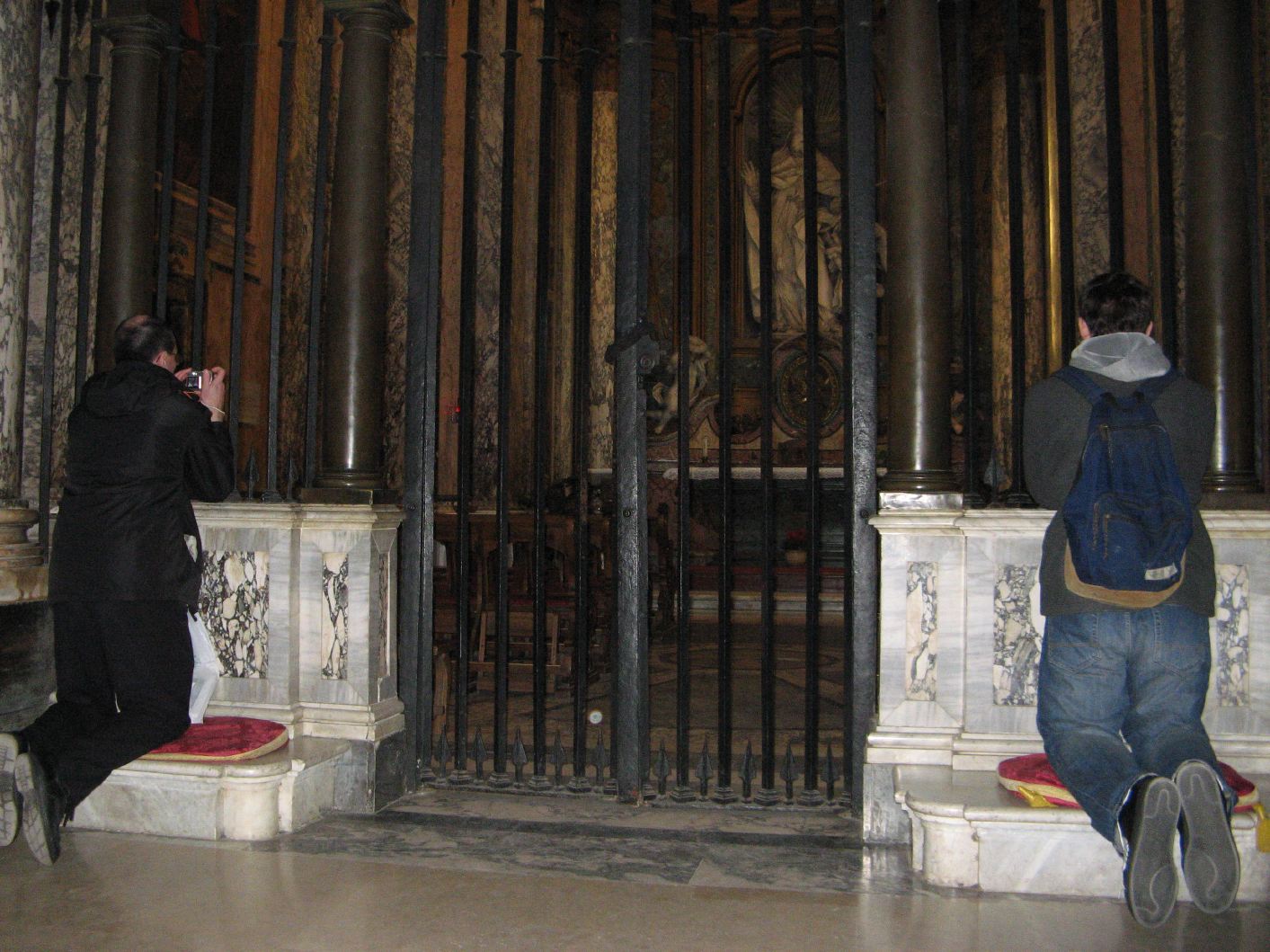 Praying at the tomb of St. Fabian in the Church of St. Sabastian. |