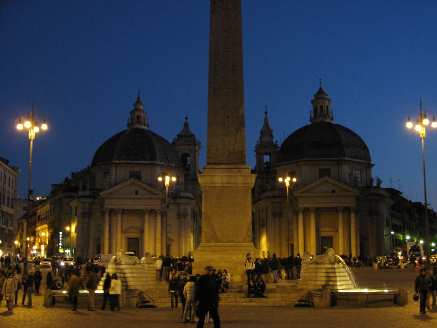 Piazza del Populo, with the twin churches of Santa Maria in Montesanto (left) and Santa Maria dei Miracoli (right). |