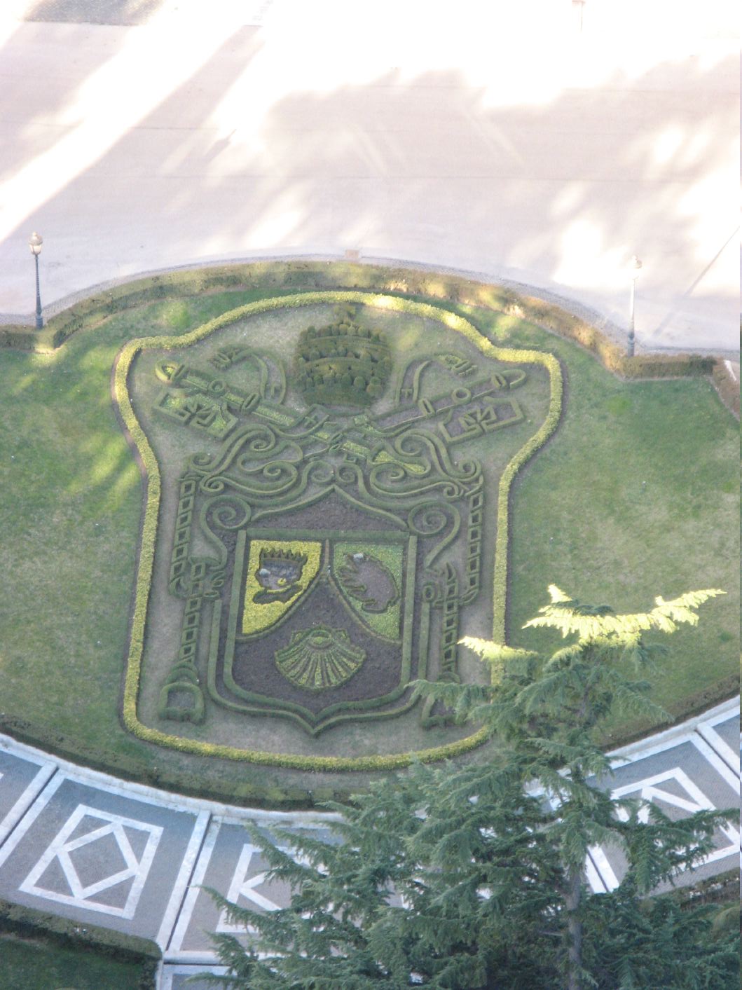 View of the Vatican Gardens from the Cupula of St. Peter's - Pope Benedicts Papal crest. |