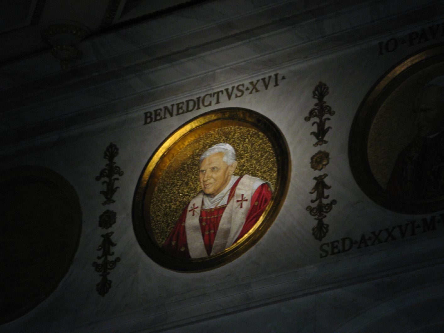 In St. Paul's Outside the walls are Mosaics of all the popes, here the 265th: Pope Benedict XVI |