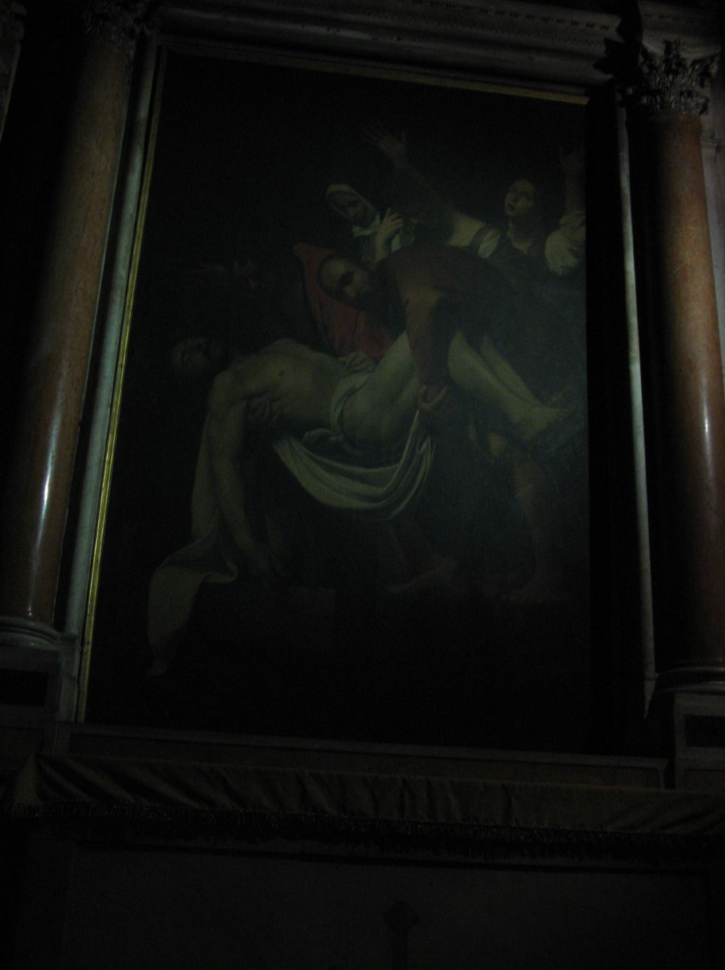 The Deposition from the Cross (1600), considered one of Caravaggio's greatest masterpieces in Chiesa Nuova (the original is now in the Vatican Museums, see below). |