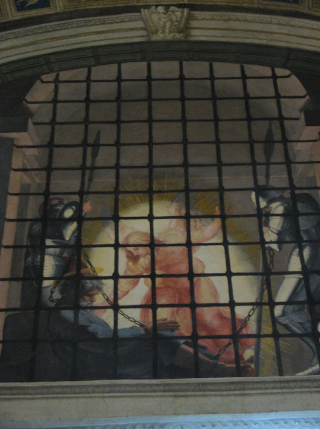 Raphael, The Liberation of St Peter shows the prince of the apostles and first Pope, miraculously saved from prison by an angel while the guards lie sleeping (Acts 12:5-12). |